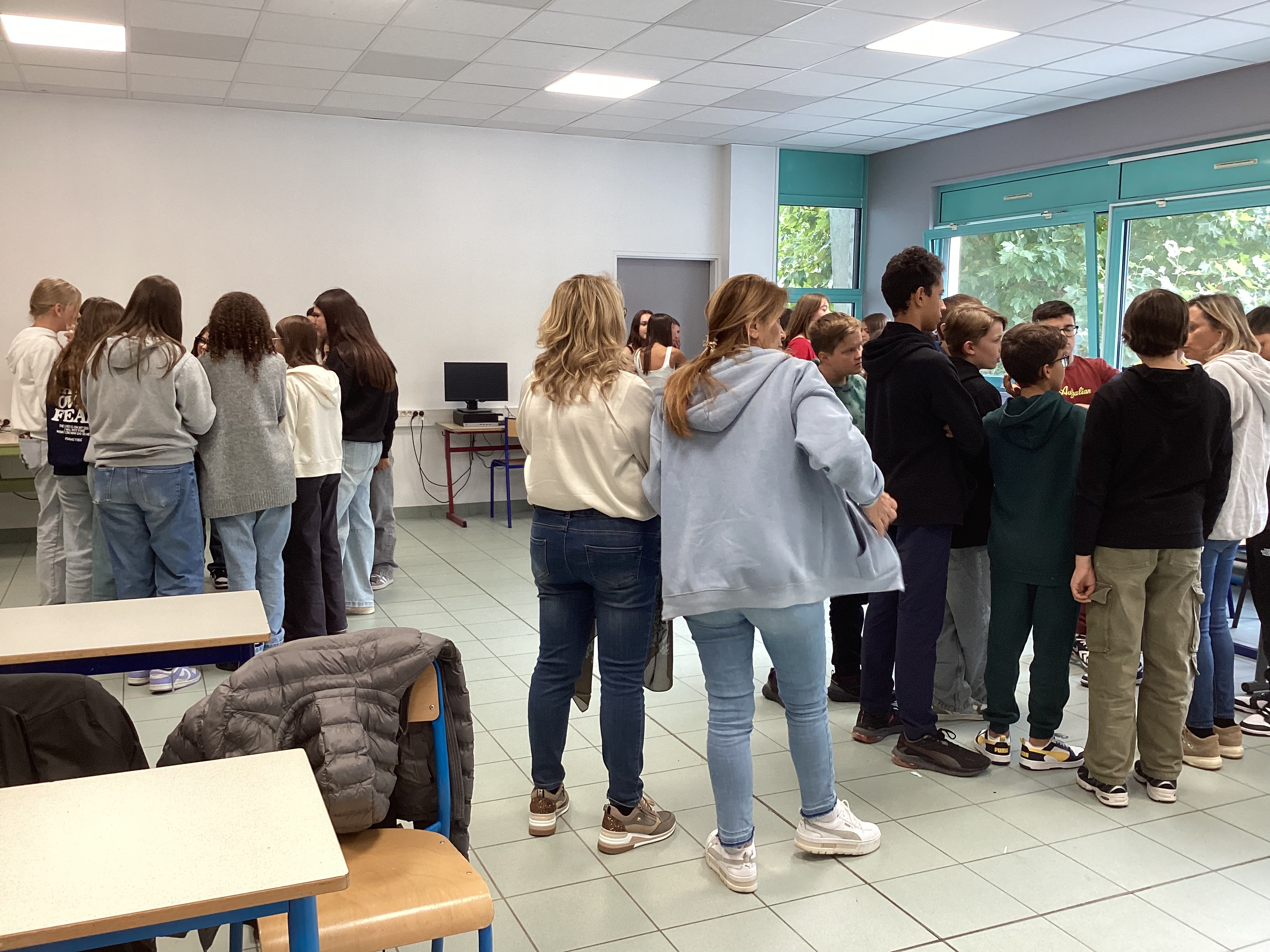 Les élèves italiens et leurs professeures sont venus dans les classes faire l'expérience d'une journée de cours "à la française" : ils ont été surpris de devoir changer de salle toutes les heures, eux qui restent dans la même salle toute la matinée en Italie. Ils ont aussi trouvé l'ambiance de classe plus disciplinée et plus calme en France.
