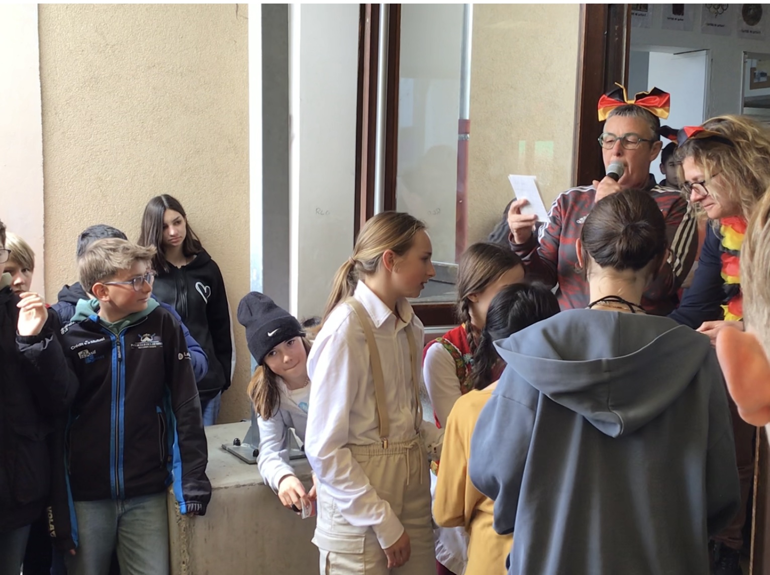 La Semaine des Langues a démarré sur les chapeaux de roue dès le lundi midi avec un jeu de chinese whispers ("téléphone arabe") au cours duquel les mots et phrases prononcés au départ par les enseignantes dans les différentes langues se sont transformés en un hilarant gloubiboulga auquel les élèves eux-mêmes n'ont rien compris ! La preuve empirique et édifiante que la clarté est la clé de la communication, et qu'une rumeur peut vite enfler sur un simple malentendu... Dans tous les cas, un bon amusement pour toutes celles et tous ceux qui se sont prêtés à l'expérience !