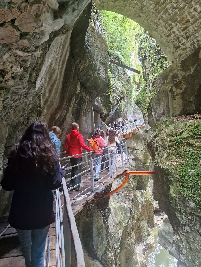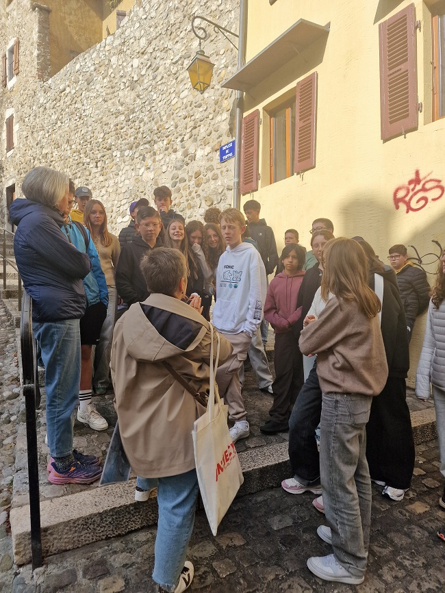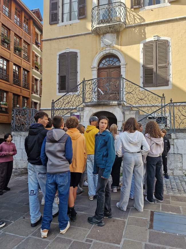 Sous un temps radieux, élèves français et allemands ont exploré Annecy. La visite guidée de la vieille ville a permis d’en découvrir l’histoire et le patrimoine. Après un pique-nique partagé, une heure de temps libre a offert à chacun l’occasion de flâner, faire du shopping ou profiter de l’ambiance au bord du lac. L’après-midi, le groupe a visité les spectaculaires Gorges du Fier, avant un retour au collège.